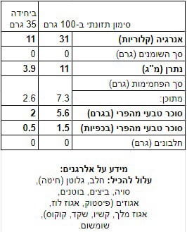 סימון תזונתי, אלרגנים ומידע נוסף ניתן לקרוא בטבלה המצורפת: